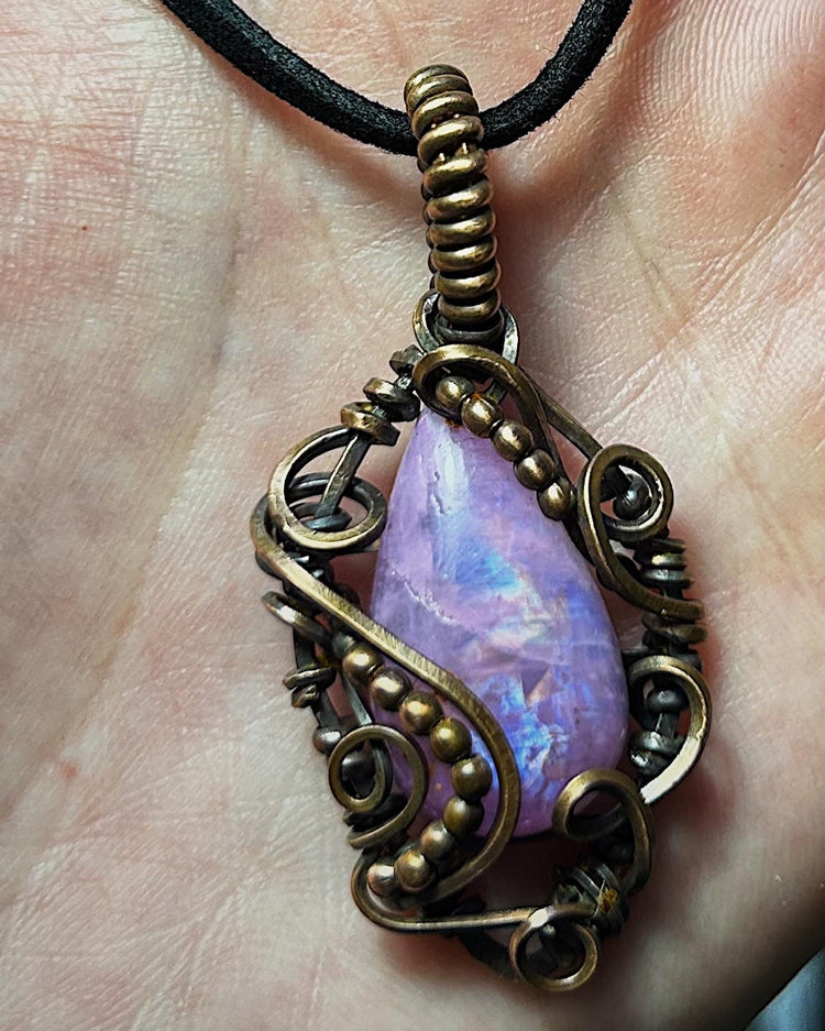 Dyed Moonstone Pendant Wrapped in Oxidized Copper