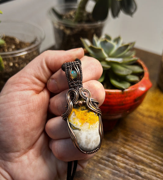 Tree Moss Agate Stone Pendant Wrapped in Copper Tree of Life