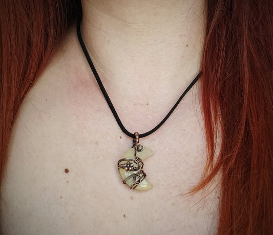 Moon Shaped Yellow Aventurine Stone Wrapped in Oxidized Copper