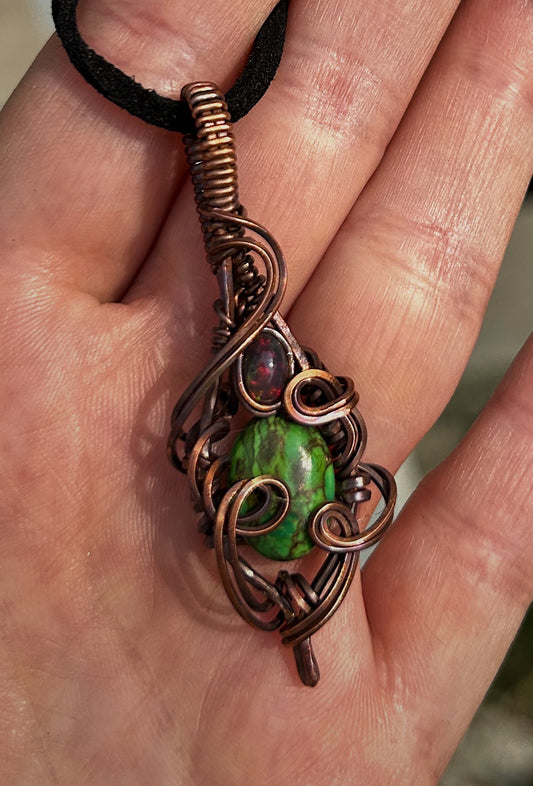 Sold outAurora Opal Stone and Copper Pendant