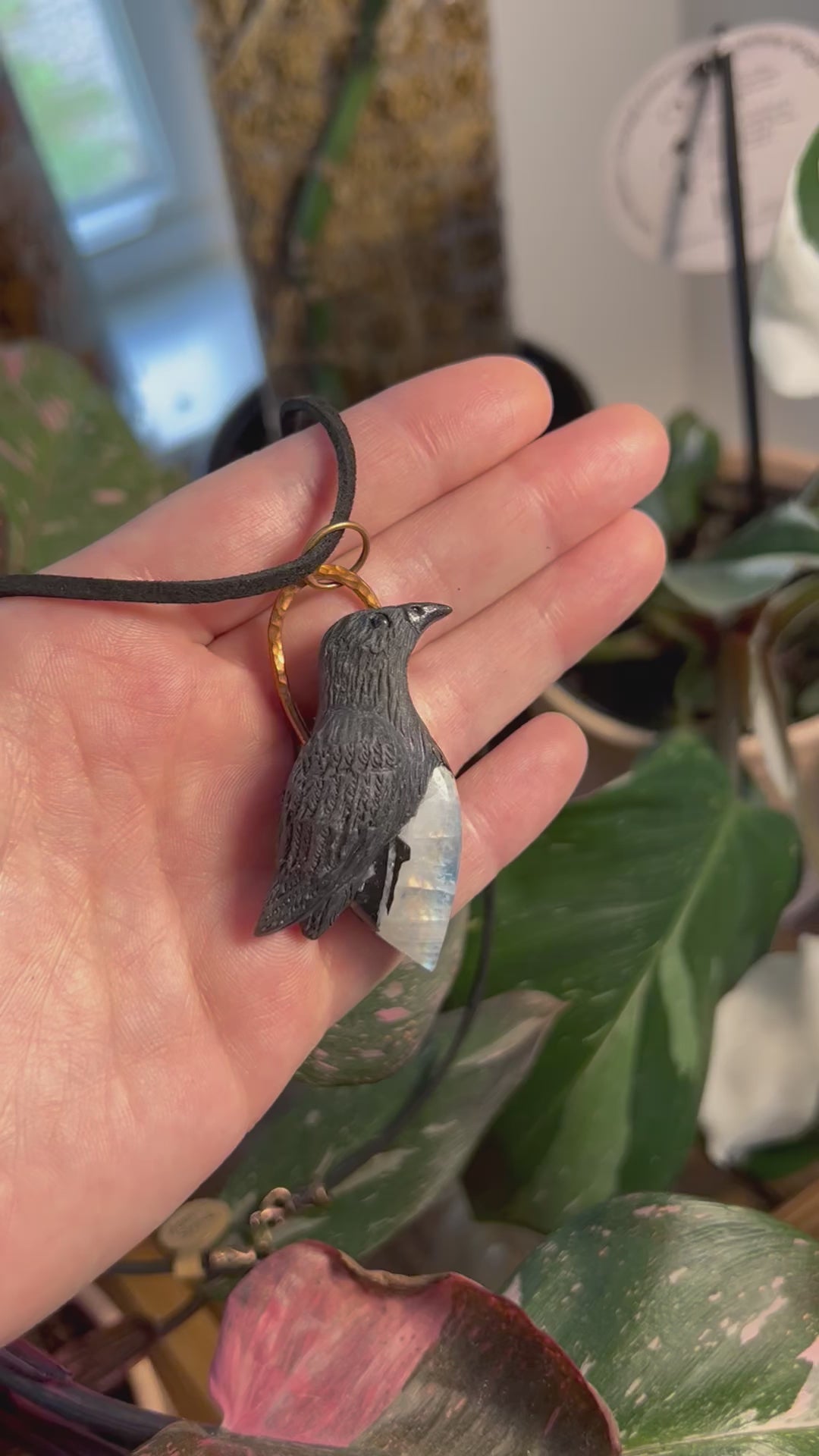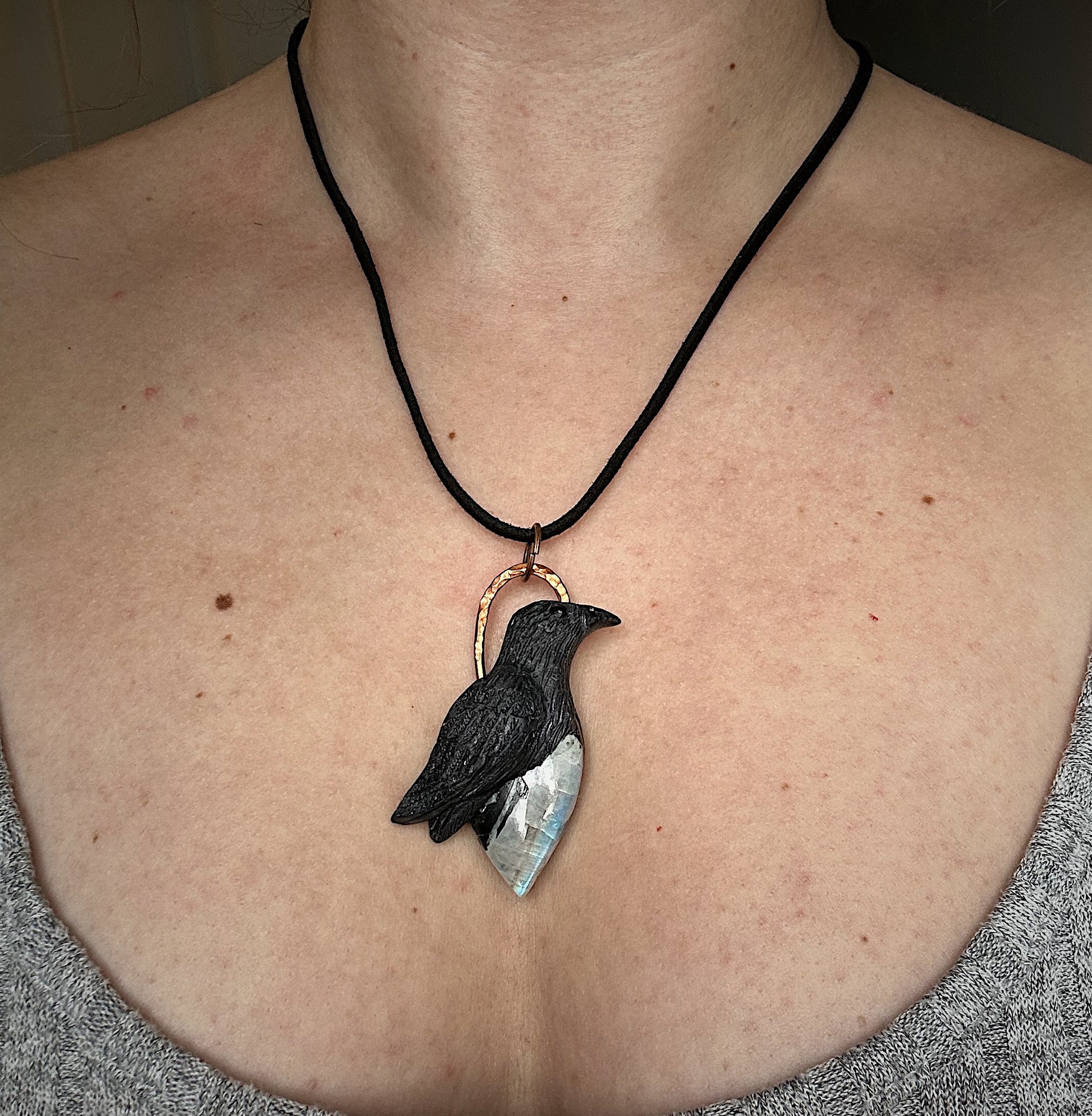 Hand sculpted raven and moonstone pendant π¦ββ¬