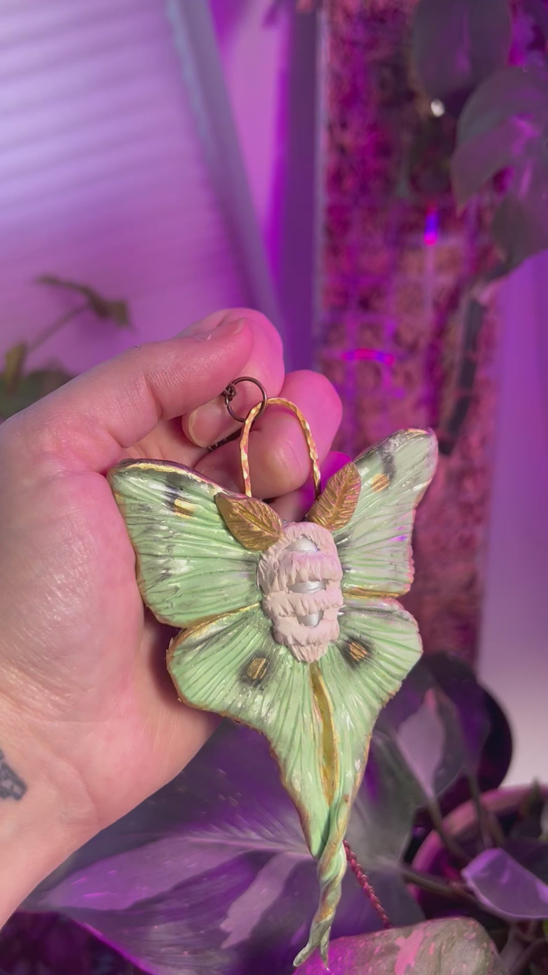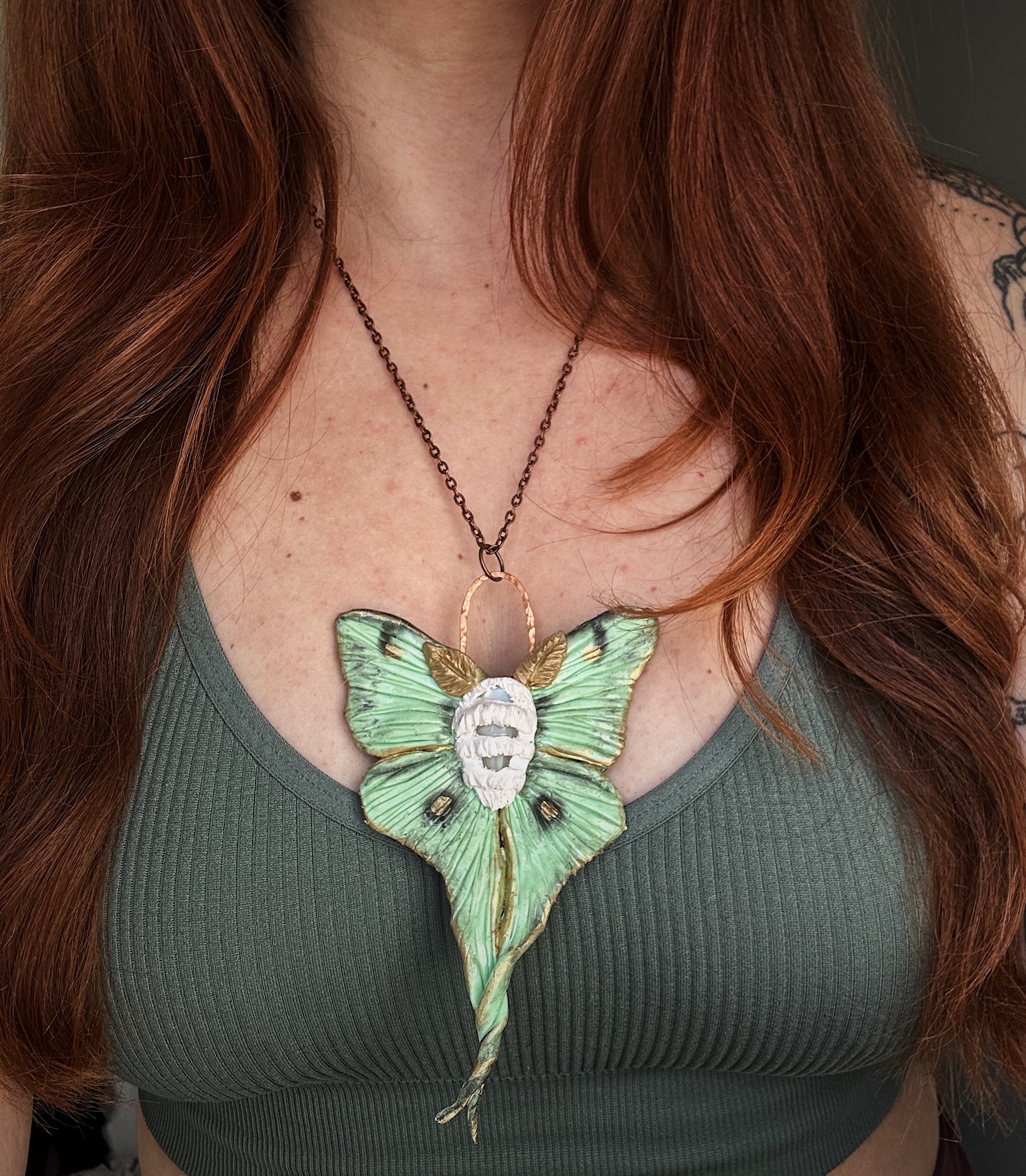 ✨This clay Luna moth pendant is hand sculpted with polymer clay and accented with selenite stone in middle. ✨