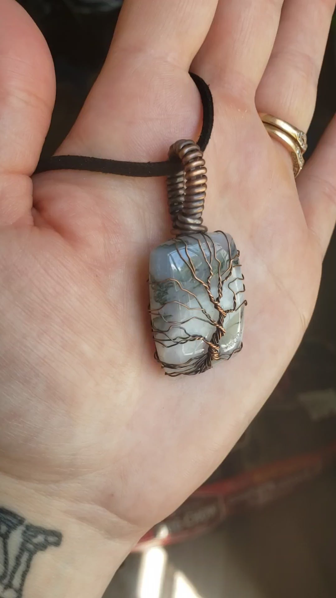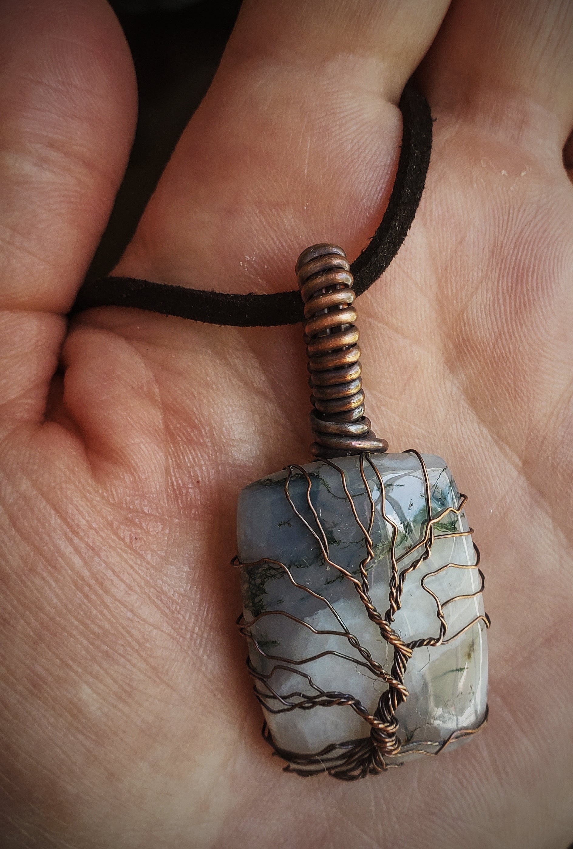 Tree Moss Agate Stone Pendant Wrapped in Copper Tree of Life