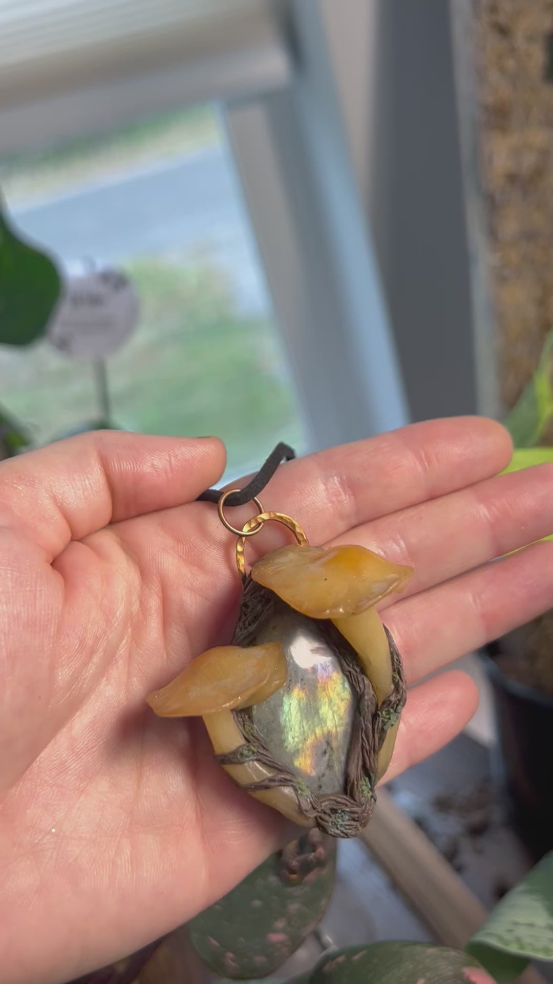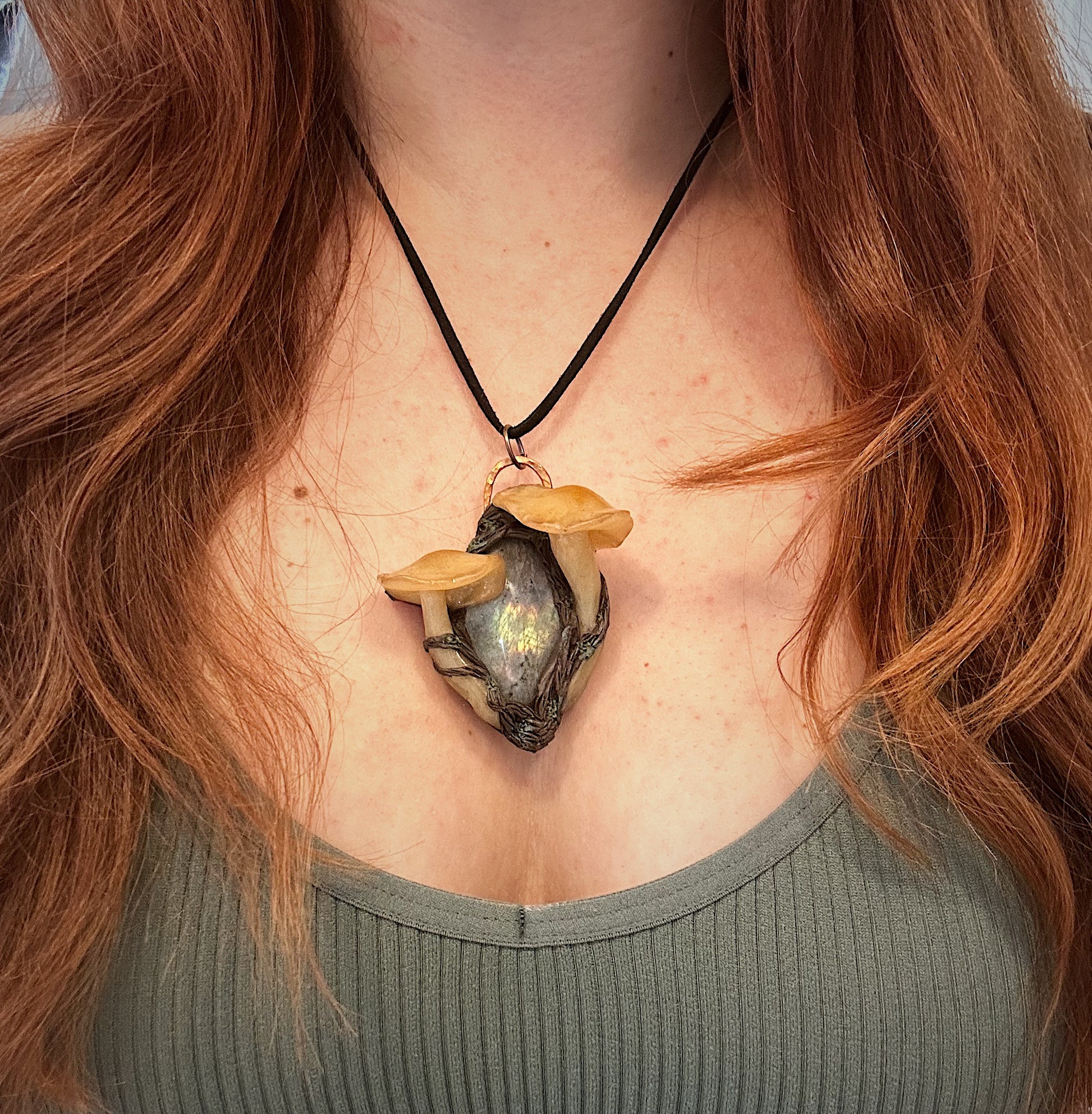 β¨πβπ«clay mushroom and labradorite pendant πβπ«β¨